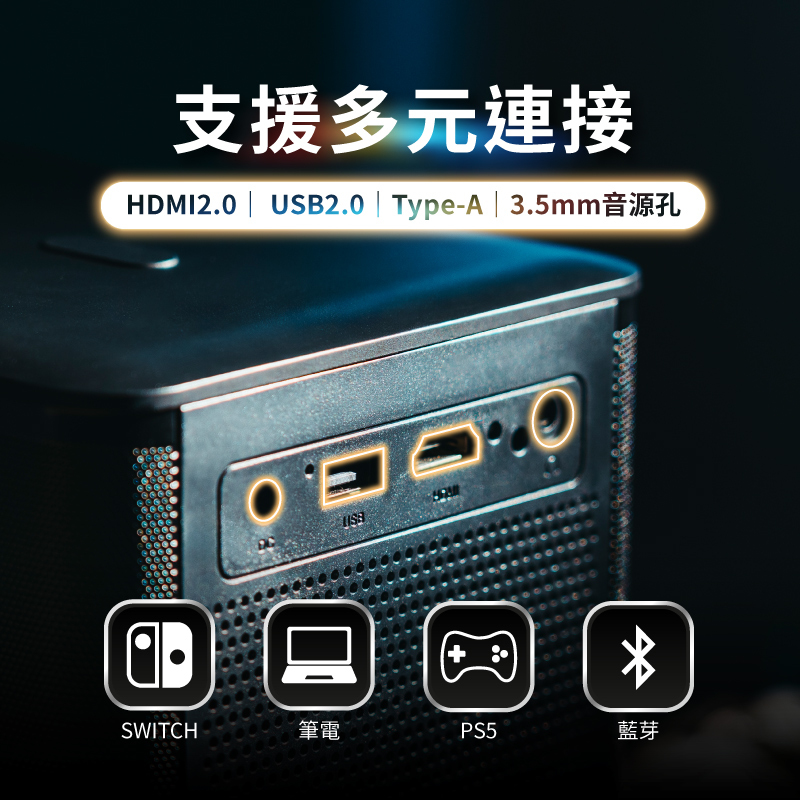 內容物:投影機主機x1 / 遙控器x1 / HDMI線x1 / 變壓器x1 / 布幕x1 / 收納袋x1 / 腳架及收納袋x1 / 電源線x1 / 保固卡x1