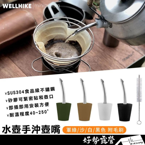 WELLHIKE 水壺手沖壺嘴-附毛刷【好勢露營】延長壺嘴 水壺壺嘴 燒水壺嘴 手沖壺嘴 不銹鋼咖啡濾泡壺嘴 手沖咖啡