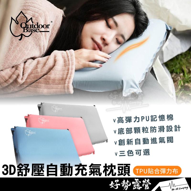 Outdoorbase 3D舒壓自動充氣枕頭【好勢露營】TPU枕頭 戶外枕露營枕 月光白/珊瑚粉/冰藍色