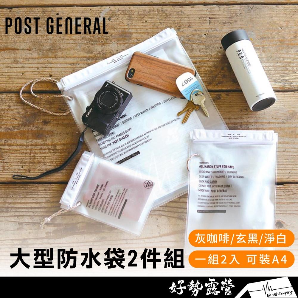 POST GENERAL 大型防水袋2件組【好勢露營】灰咖啡 玄黑色 淨白色 置物袋 收納 A4 文具 筆記本 玩水海邊