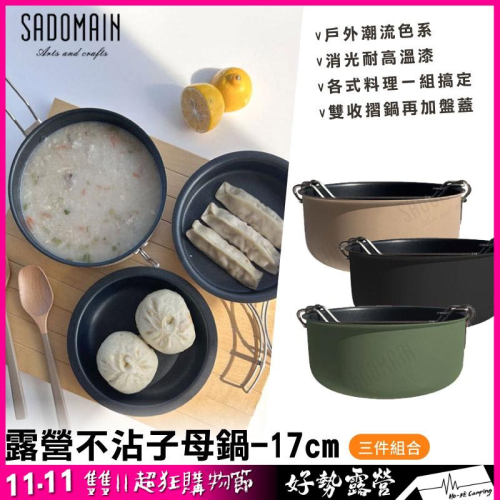 仙德曼SADOMAIN 露營不沾子母鍋-17cm【好勢露營】 鍋具 AG017湯鍋飯鍋 煎炒鍋盤子 早餐鍋具組