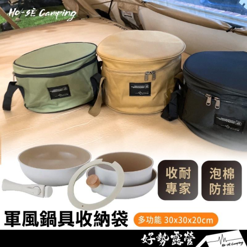 Ho-Sè 軍風鍋具包【好勢露營】鍋具組多功能防撞收納包 NEOFLAM 圓型收納包露營裝備包餐具收納包 炊具包 廚具包