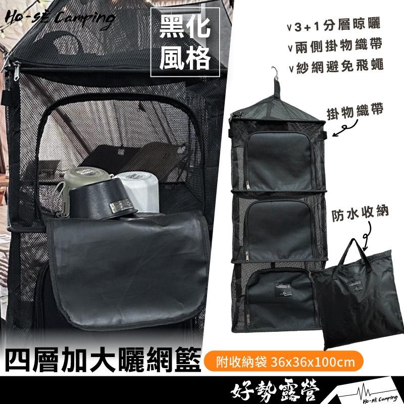 ◤露營必備◢ 戶外露營萬萬不可缺少的超萬用曬網籃 擁有3+1層的四層方形餐櫥籃,空間足夠放置所有的餐具、鍋具⋯ 還附上方型防水手提袋,太超值了! 除了收納曬網籃之外,比較小巧的裝備和小物也可以一起收納 ✔空間利用性強大,4層式分層晾曬,可分層放置物品收納、晾曬 ✔兩側有掛物織帶可吊掛較常拿取物品 ✔從上到下開放通風的超透氣網布,兼具通風及衛生 ✔紗網有效避免飛蠅爬蟲碰觸到餐具 ✔拉鍊開口面使用牛津布打造,整體更整潔不凌亂,也更有隱私感 ✔附防水收納袋,超好看又潮流的設計 ✔附上鉤掛,方便隨處吊掛 ✔可有效率的放置餐具和食物 ✔質感戶外品牌標籤,更有質感 【商品規格】 顏色 :黑 材質 :牛津布、不鏽鋼、紗網 重量 :770g 收納尺寸 : 36x36x100cm 展開尺寸 : 42x42x3.5cm 配件 : 收納袋 【注意事項】  1.產品因拍攝及個人電腦顯示器色溫關係,顏色可能略有差異,實際以廠商出貨為主。 2.鑑賞期非試用期,為了保障每位客人購買到真正全新的商品的權益,不接受「要使用過才知道好不好用」或類似的理由要求已使用過之商品的退貨。 若有試用需求,歡迎至好勢露營實體展示店面試用 3.木製、鐵製或塑膠其他製品都有天然紋路或些微製程痕跡,如有完美主義者,請於購買前謹慎考慮後,再下單購買。 4.所有商品於出貨前皆會進行檢查,收到商品時,請錄影拆箱,商品請第一時間在家測試沒問題再帶到營區使用,一旦帶到營區使用即不接受退換貨。 5.與衛生有關之產品,例如睡袋、枕頭類、充氣床、接觸人體皮膚之產品,一旦打開過即無法退換貨(因無法證明沒有使用過) 【保留出貨權條款】 本網站保留出貨與否之權利. 為保障彼此之權益,賣家在收到您的訂單後仍保有決定是否接受訂單及出貨與否之權利。 如因商品缺貨、停產、瑕疵、資料不正確或系統問題等 ... 🚩追蹤粉絲專頁,好康消息不漏接 不定期推出驚喜優惠活動、折扣券!  FB粉絲團搜尋『好勢露營 Ho-sè Camping』 https://s-cf-tw.shopeesz.com/file/f463dbfdace1afd451c00b9a8721f2f4