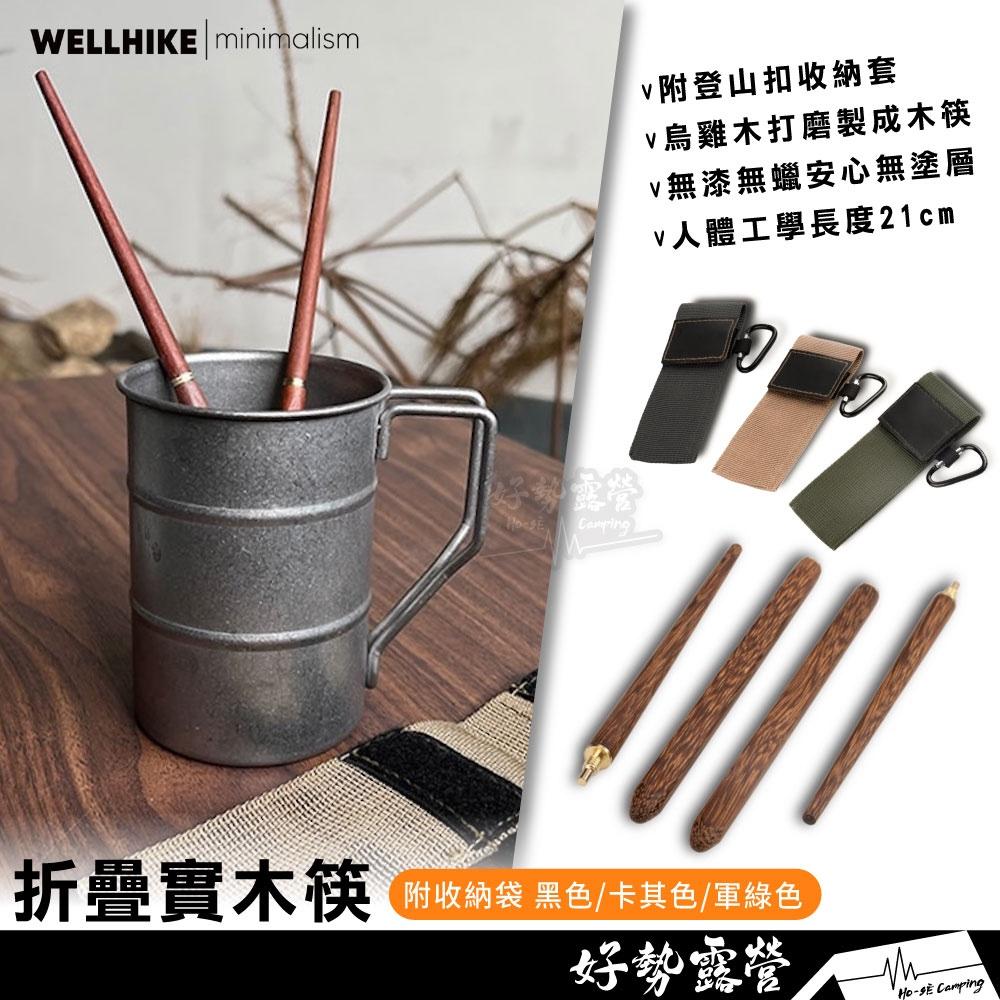 WELLHIKE 折疊實木筷-附收納套【好勢露營】附登山扣 露營筷子餐具 環保筷 木筷折疊筷子摺疊餐具