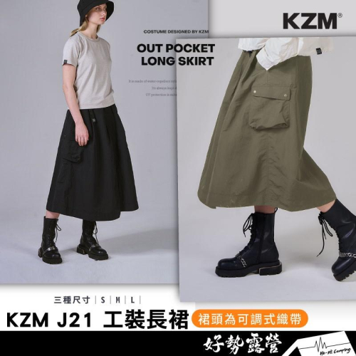 KZM J21 工裝長裙【好勢露營】黑色腰圍可調整 休閒裙工作裙 戶外長裙 輕機裙 女長裙 黑色 軍綠色