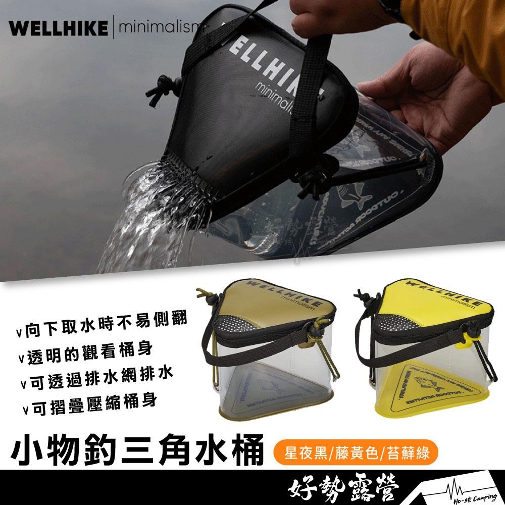 WELLHIKE 小物釣 三角水桶【好勢露營】釣魚桶送打水繩 手提摺疊水桶 路亞溪流折疊透明活魚桶 防水裝魚桶 打水桶