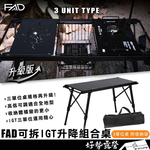 Ho-sè FAD 可拆升降組合桌-升級版【好勢露營】IGT三單位桌 升降桌 露營桌 IGT爐 IGT桌 摺疊桌 連接框