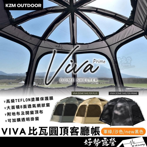 KAZMI KZM VIVA+ 比瓦圓頂客廳帳【好勢露營】炊事帳 圓頂帳 帳篷 速搭帳防水塗層 八面紗窗 軍風帳 客廳帳