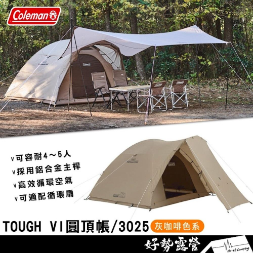 Coleman TOUGH VI圓頂帳/3025/灰咖啡【好勢露營】CM-06745圓頂帳篷4-5人家庭帳