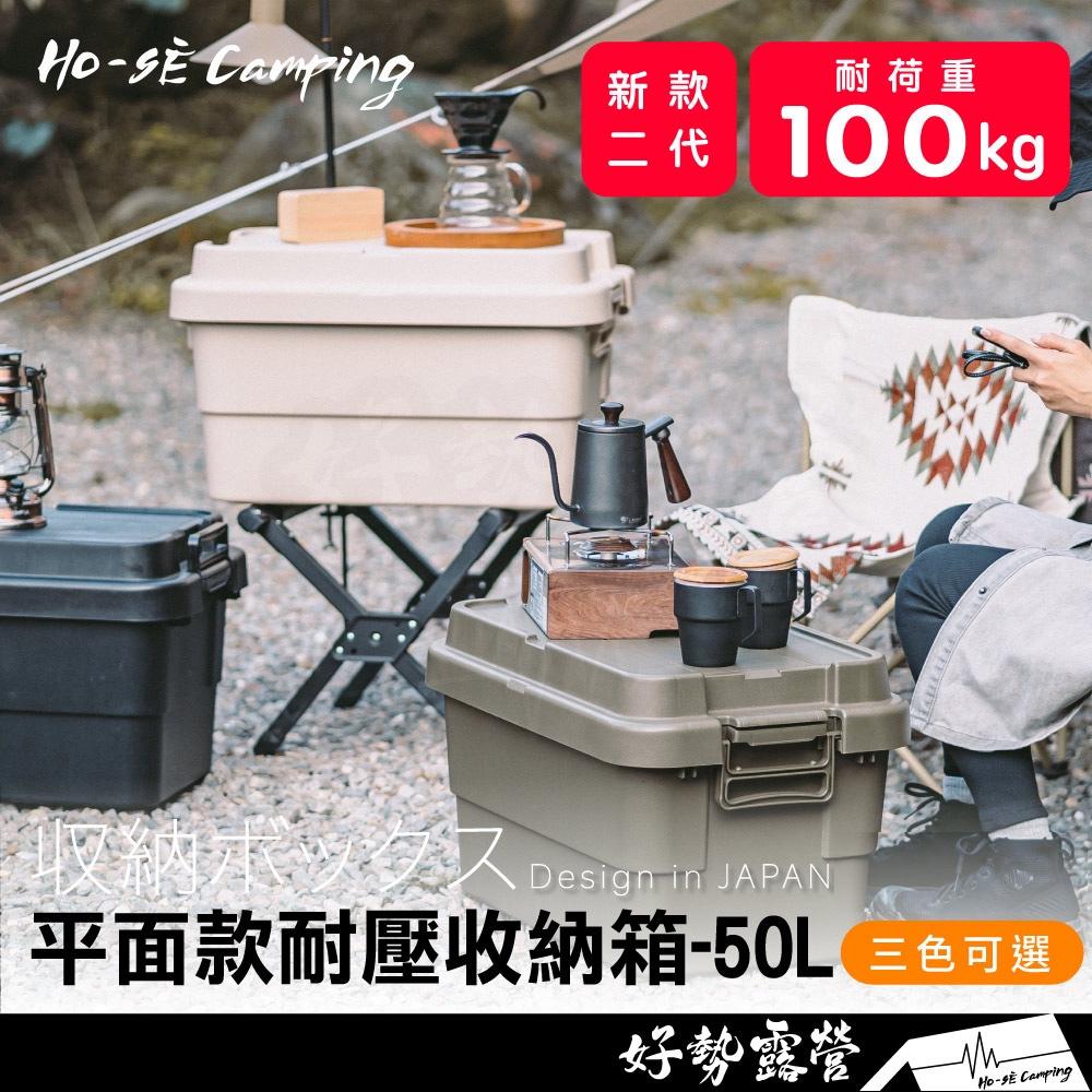 特價 新款二代 平面耐壓收納箱30L/50L【好勢露營】可當椅子 裝備箱 RV桶 耐重箱 收納箱 露營收納箱 加厚款