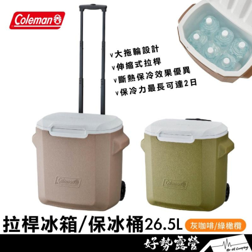 Coleman 拉桿冰箱26.5L灰咖啡/綠橄欖【好勢露營】CM-05748 CM-25749戶外冰箱 保冰桶 行動冰箱