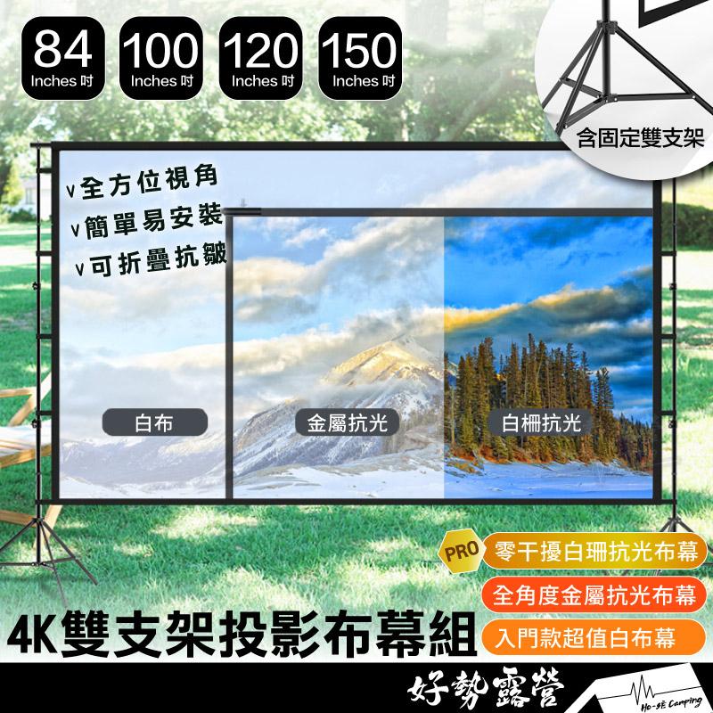 4K雙支架投影布幕組【好勢露營】超大戶外電影院 金屬抗光白柵抗光布幕三角落地式移動幕布戶外電影院 投影幕100吋120吋