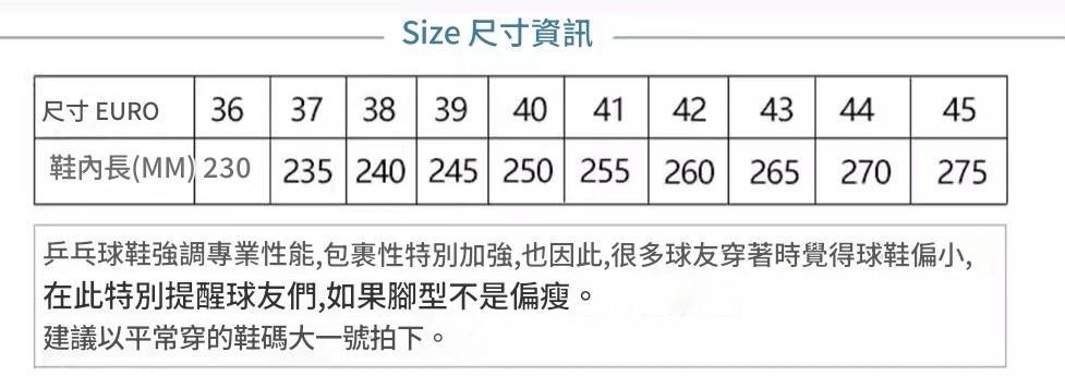 量好實際的腳長度參照以下尺碼做選擇(此處用的是EURO碼36~45)