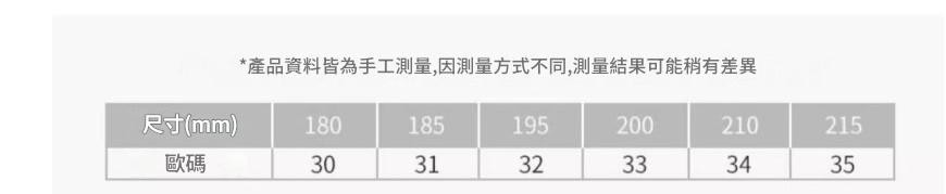 尺寸表上長度為鞋內長