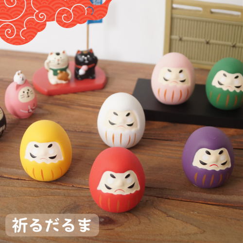 達摩不倒翁除了最傳統的紅色以外,也被塗上了其他的顏色並賦予了不同的祝福意義,讓人們能夠根據不同的許願需求,來挑選對應的達摩不倒翁。