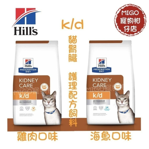 【MIGO寵物柑仔店】Hills 希爾思 貓 k/d 腎臟處方 飼料 1.81KG/3.85KG 雞肉口味/海魚口味