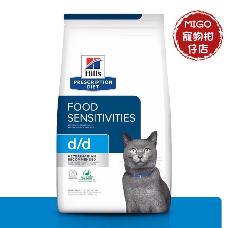 【MIGO寵物柑仔店】希爾思 Hills 貓用 d/d 食物皮膚敏感護理 處方飼料 鴨肉及豌豆 3.5磅