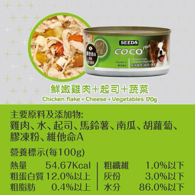 【MIGO寵物柑仔店】SEEDS 惜時 COCO PLUS 愛犬機能餐罐 170G