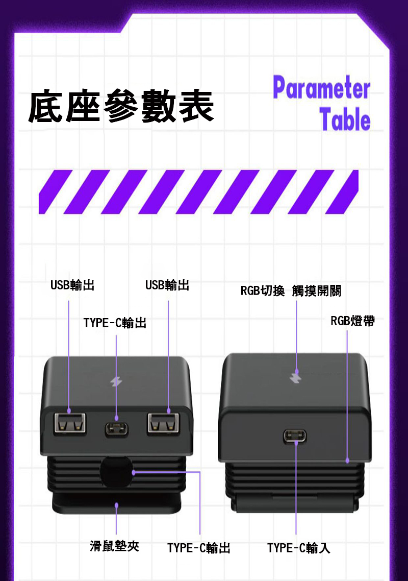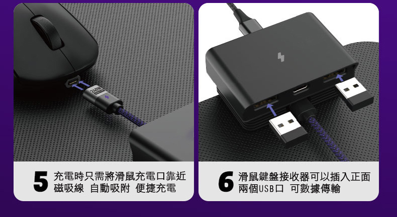 .另提供雙 USB + 1 Type-C ,可連接鍵盤、接收器等設備