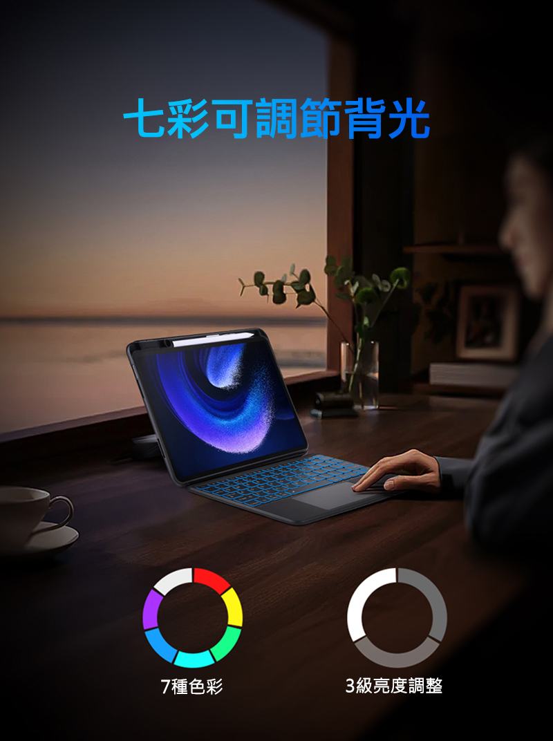 .背光有七種顏色可選,3級亮度調整