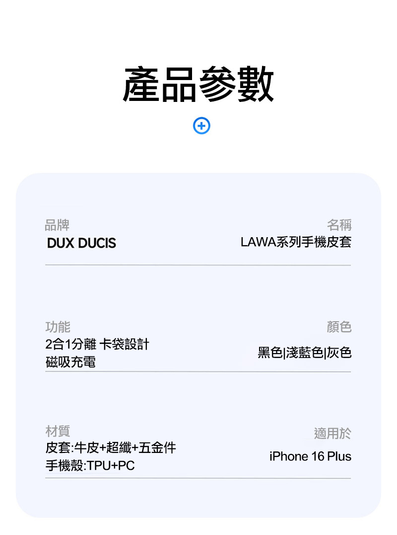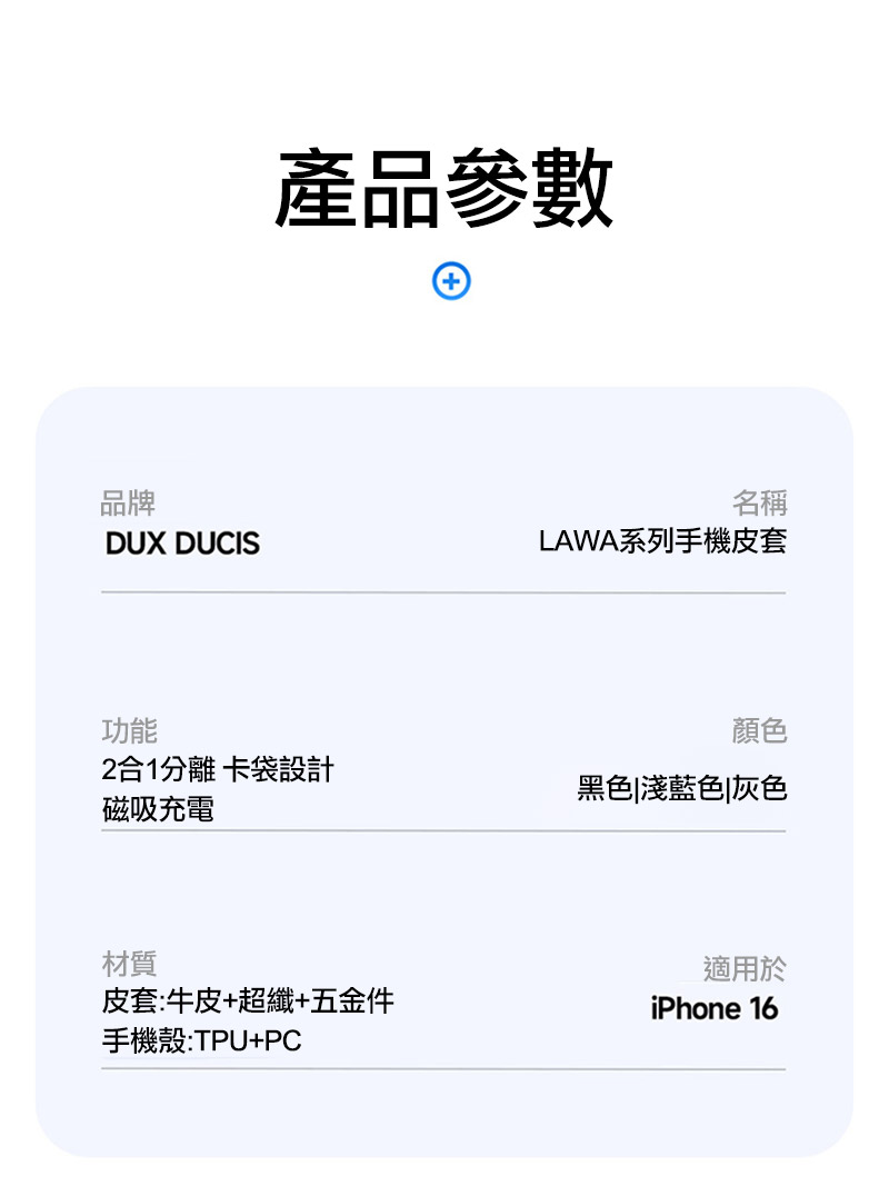 DUX DUCIS Apple 蘋果 iPhone 16 / 16 Plus LAWA 二合一錢包保護套 側翻皮套 真皮