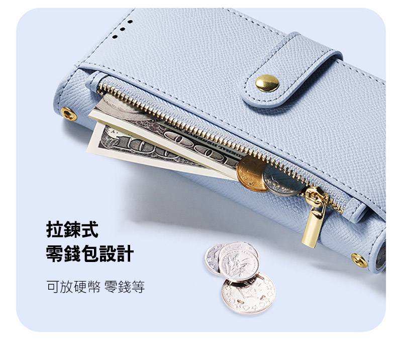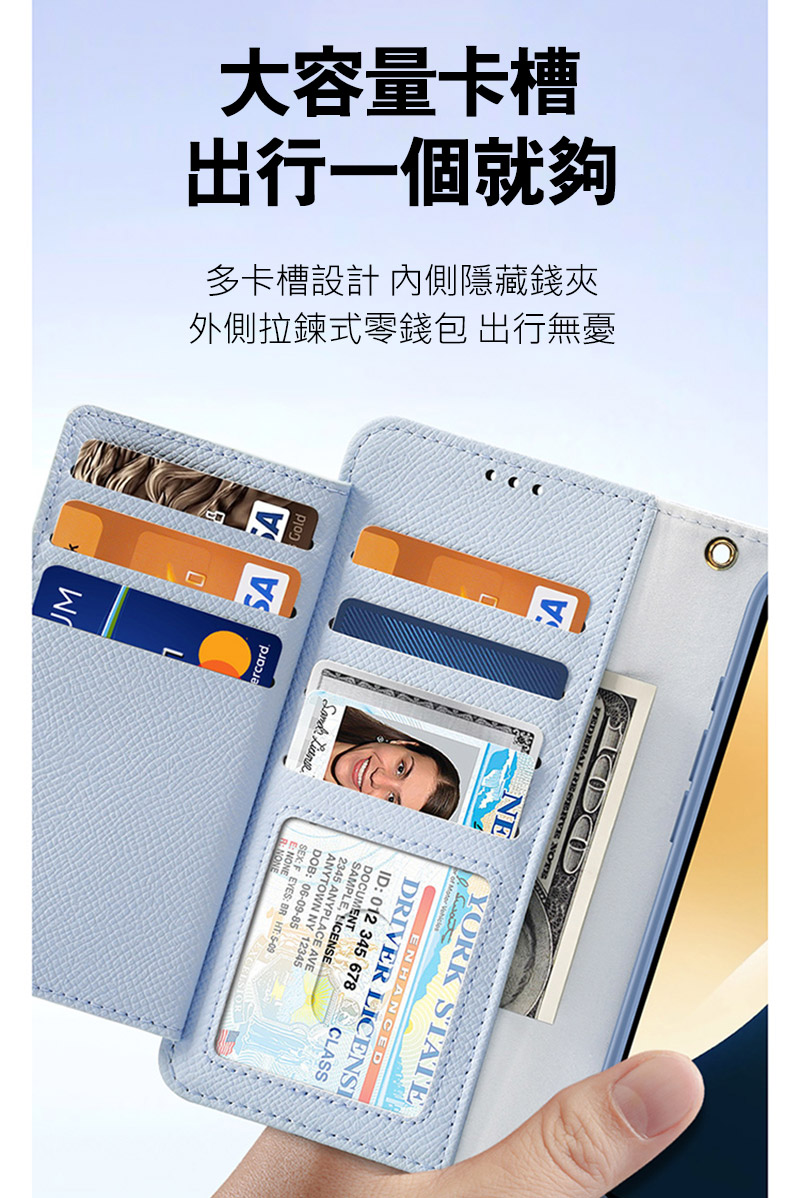 .錢包式側翻皮套,大容量卡槽,拉鍊式零錢包,出行無憂