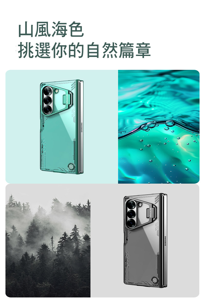 .冰空Fold手機殼,從大自然的山海中汲取靈感,將森林的綠意與大海的清澈,通過環保生物基材料呈現,盡顯大自然的純淨之美