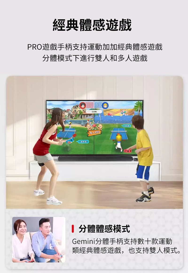 .支援體感遊戲,分體模式下進行雙人和多人遊戲