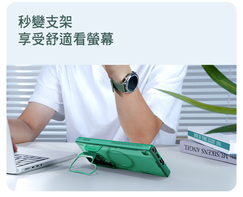 .創新鏡蓋支架設計,兼顧鏡頭保護與手機支架功能