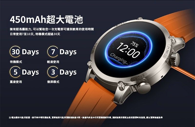 .電池容量:450mAh,典型使用3-5天,待機15天