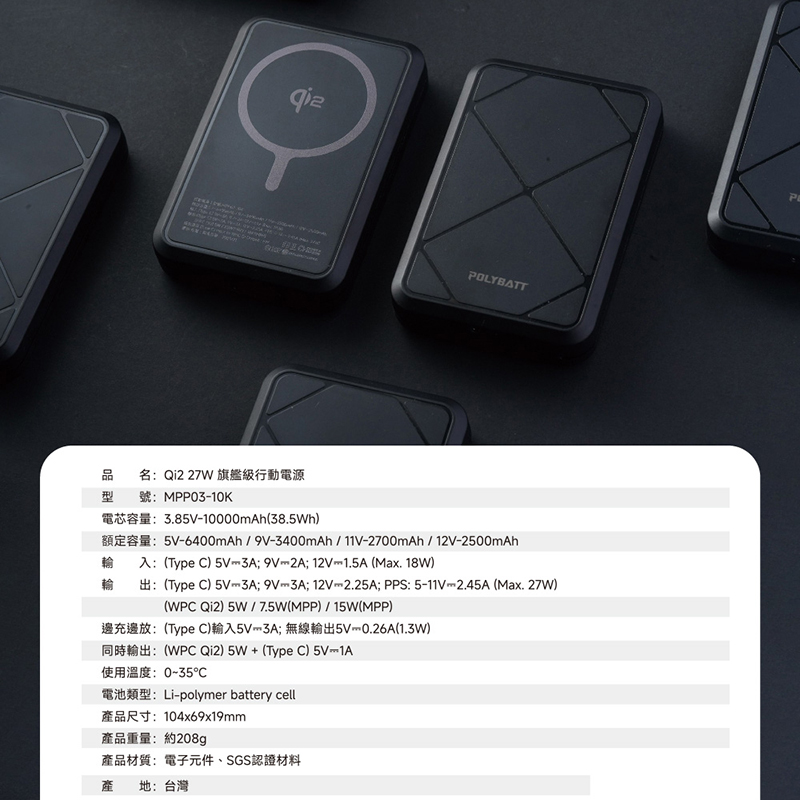 .產品名稱:POLYBATT Qi2 27W旗艦級行動電源