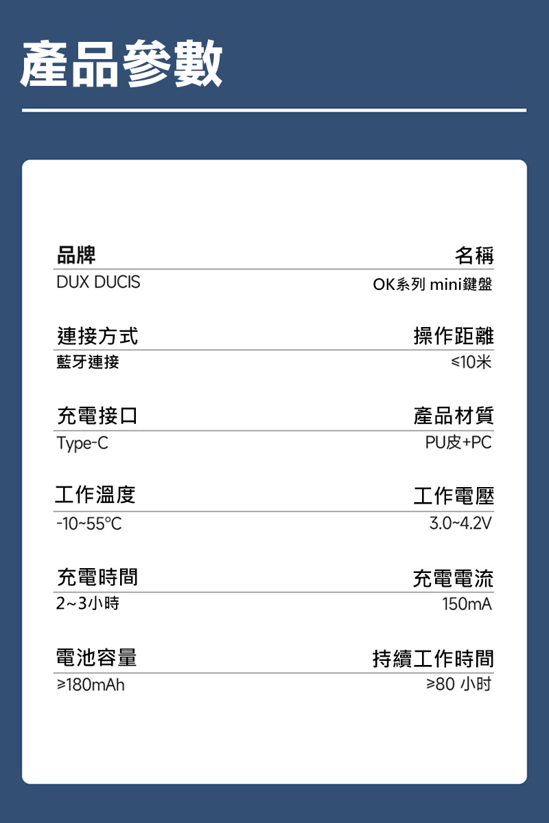 .內 容 物 :OK Mini 便攜藍牙鍵盤*1、Type-C 線*1