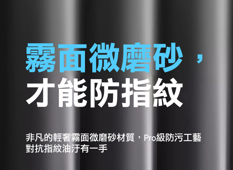 .輕奢霧面微磨砂材質,抗指紋、防油汙