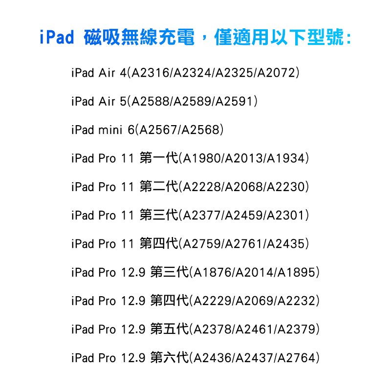 ※iPad 磁吸無線充電,僅適用以下型號