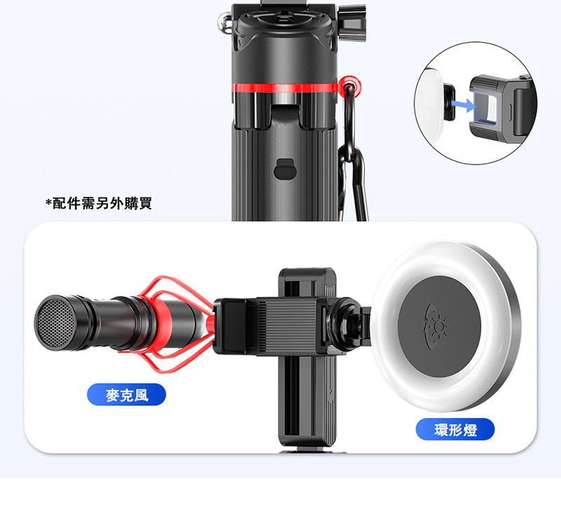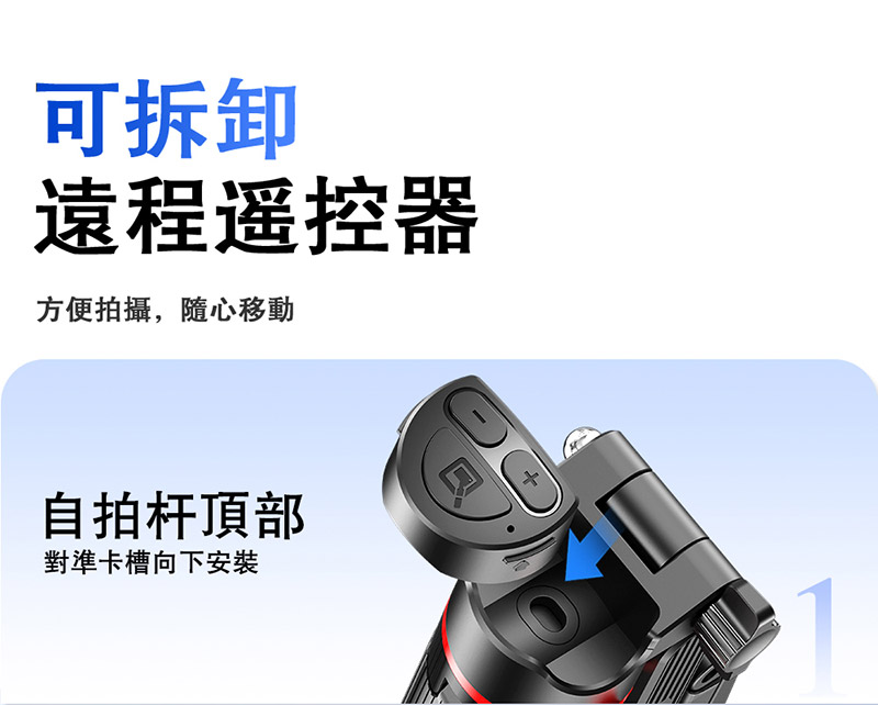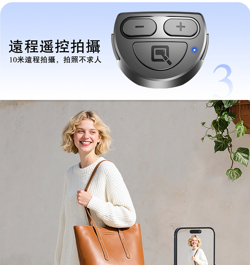 .藍牙遙控器可分離設計,方便拍攝,隨心移動