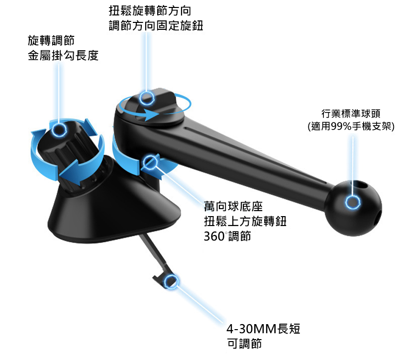 .本商品可搭配各式可嵌入 17mm 球頭的支架