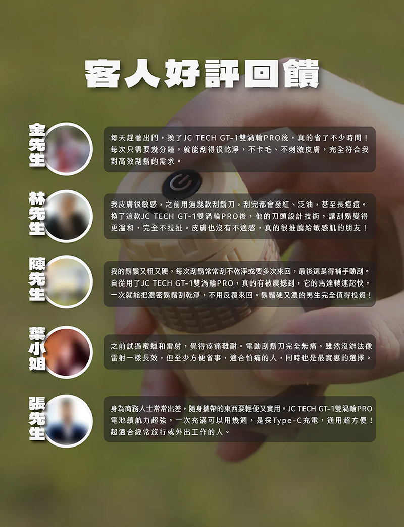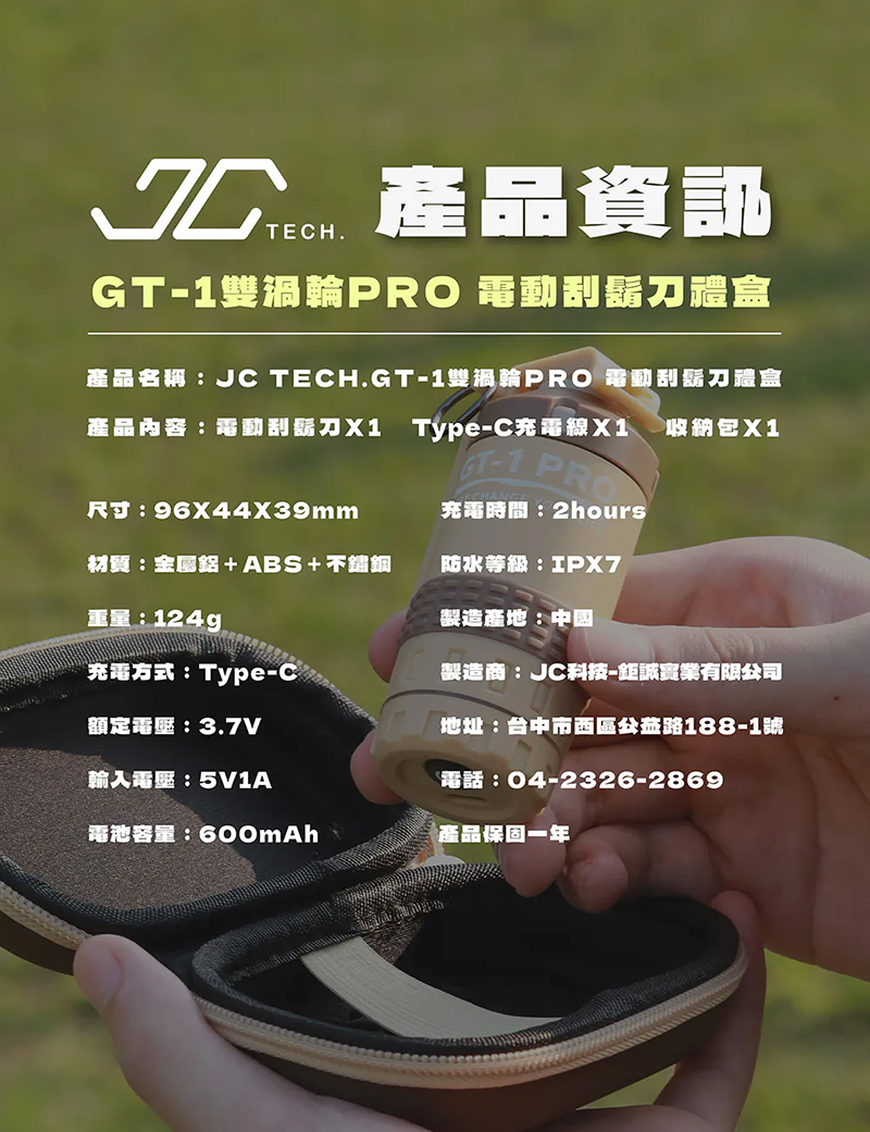 .產品名稱:JC TECH.GT-1雙渦輪PRO電動刮鬍刀禮盒