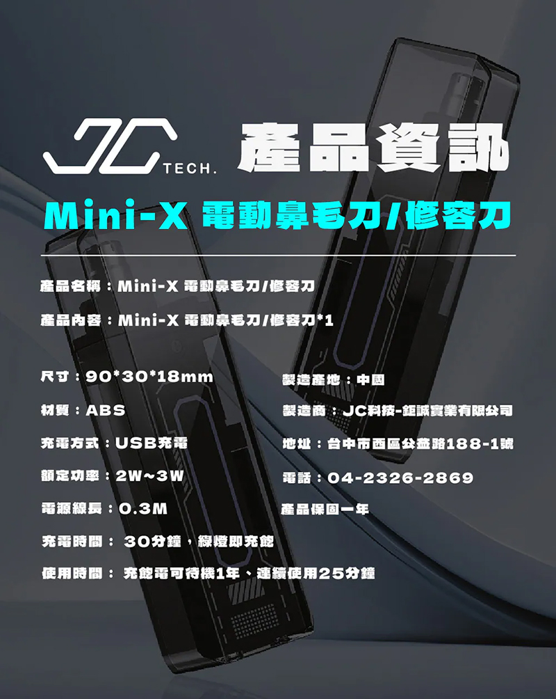 .產品內容:Mini-X 電動鼻毛刀/修容刀*1