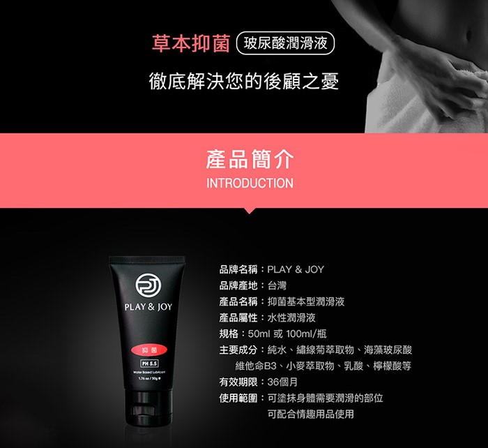 PLAY&JOY潤滑液產品可依實際需要重複使用於男女私密部位之按摩潤滑保養並增添情趣