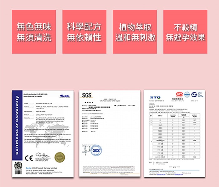 本產品不含殺精劑,不具避孕效果