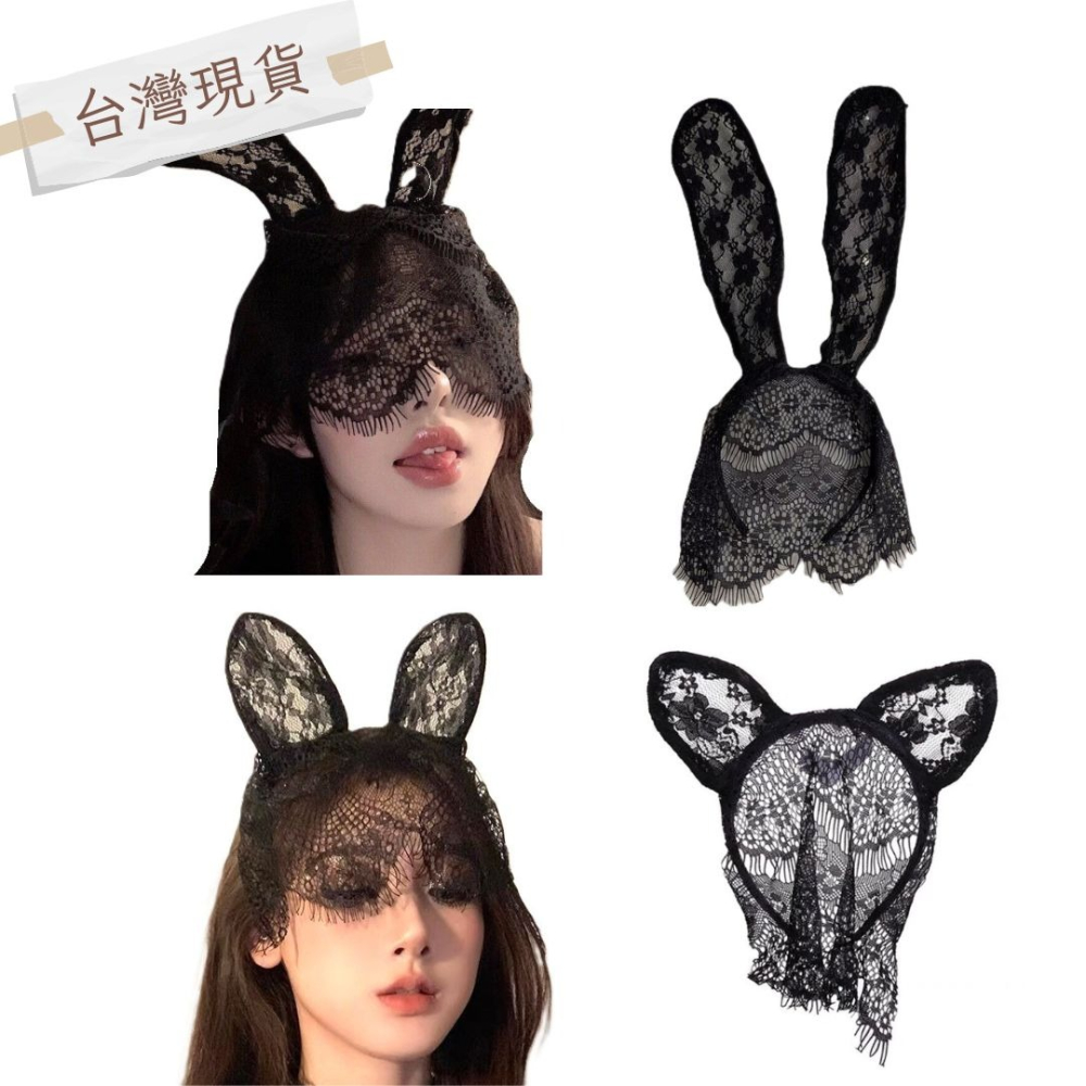 (現貨)黑色性感貓耳朵髮箍女蕾絲面罩遮臉網紗頭紗髮飾頭飾(長短款)