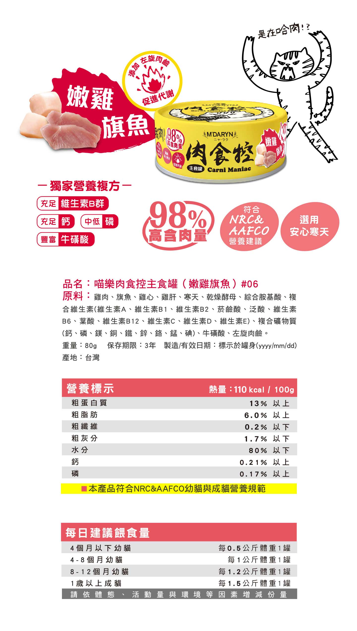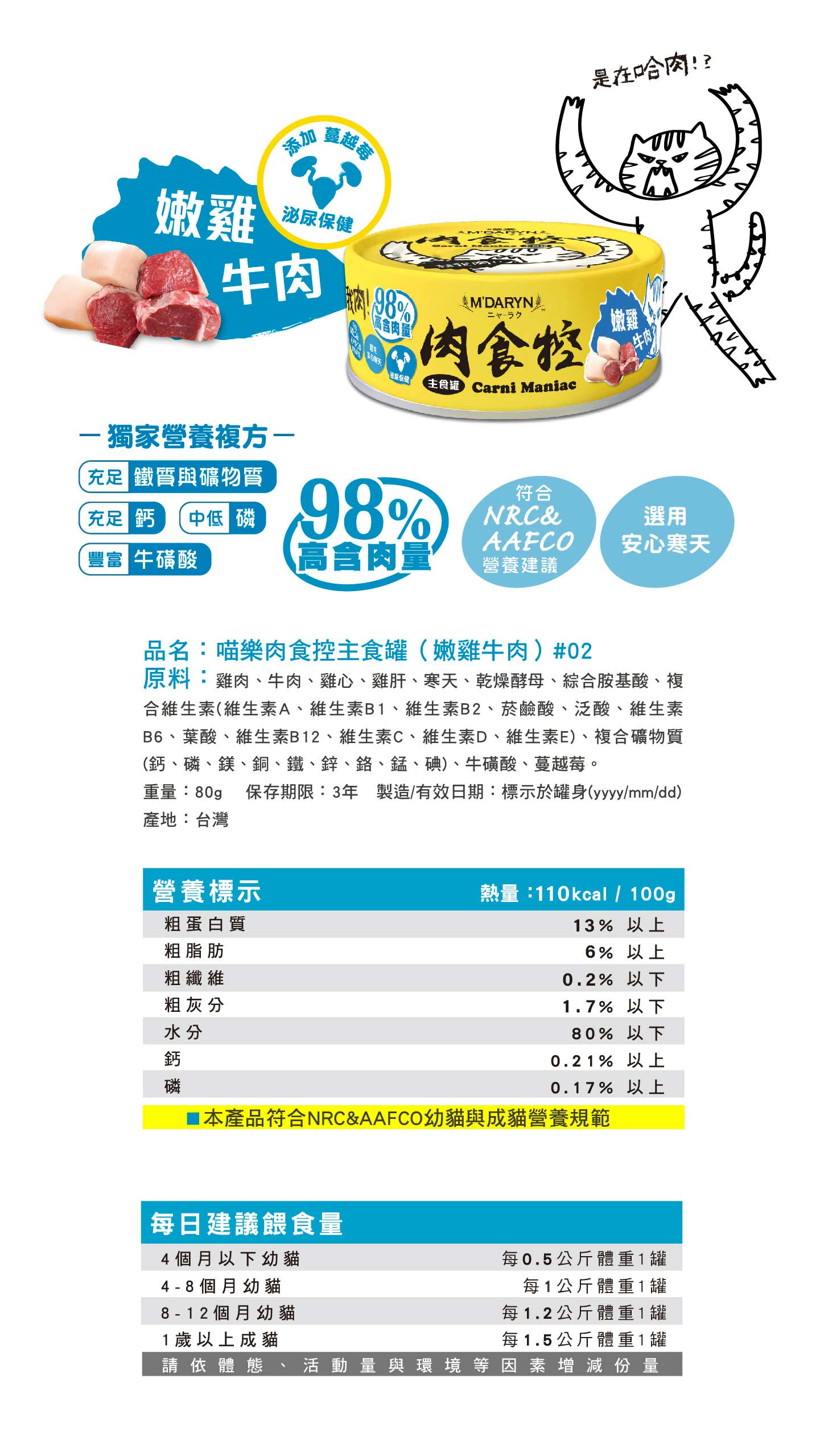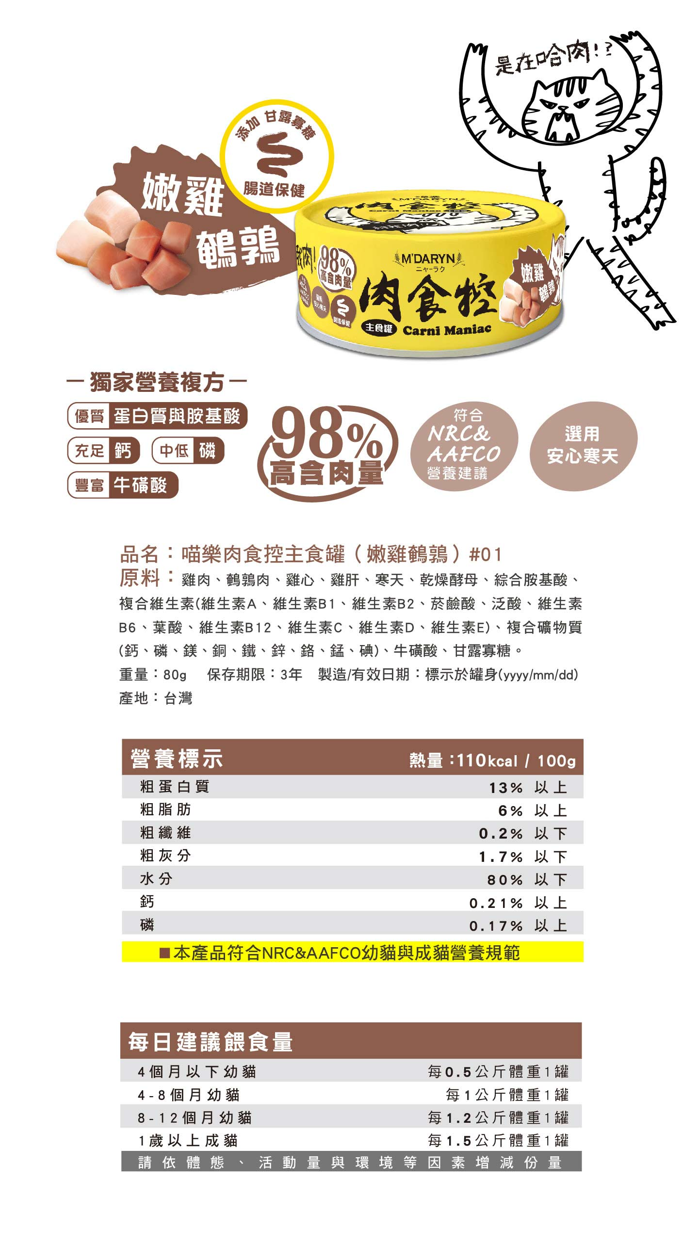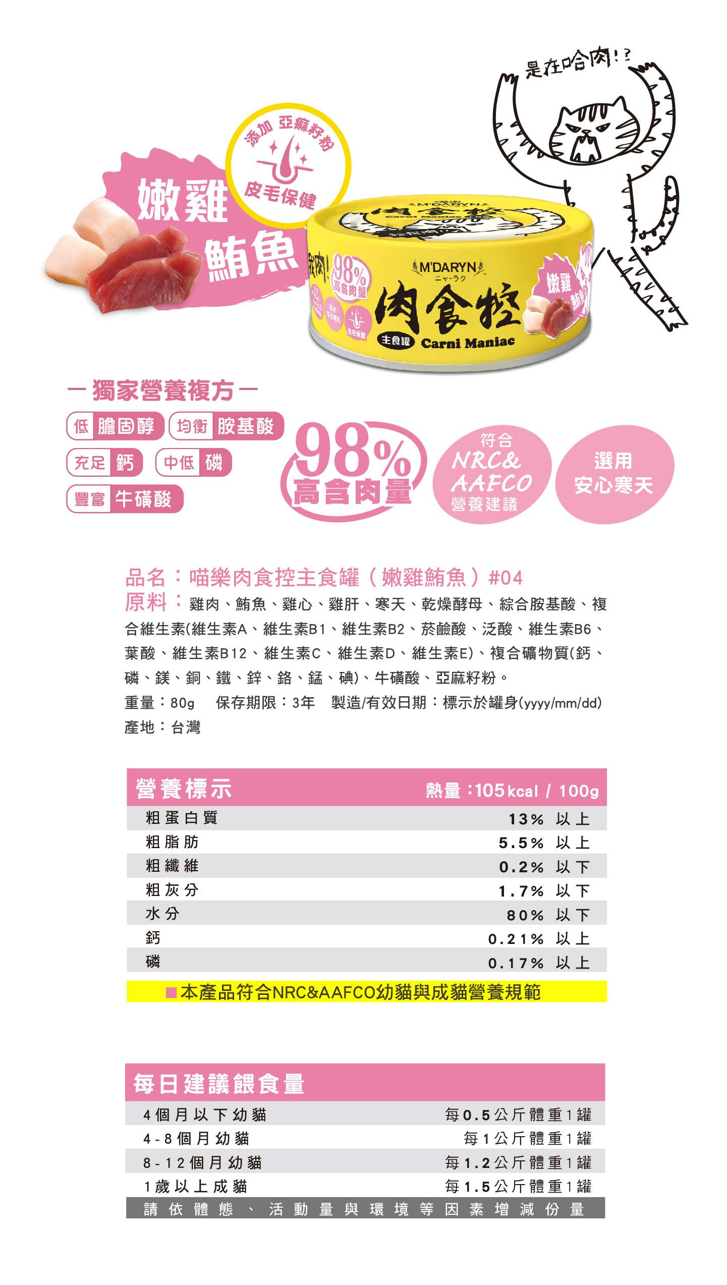 喵樂 肉食控主食罐 80G 肉食控貓罐 98%高含肉量 貓罐 貓主食罐 貓咪 喵樂 M'DARYN 罐頭 成貓 全齡貓