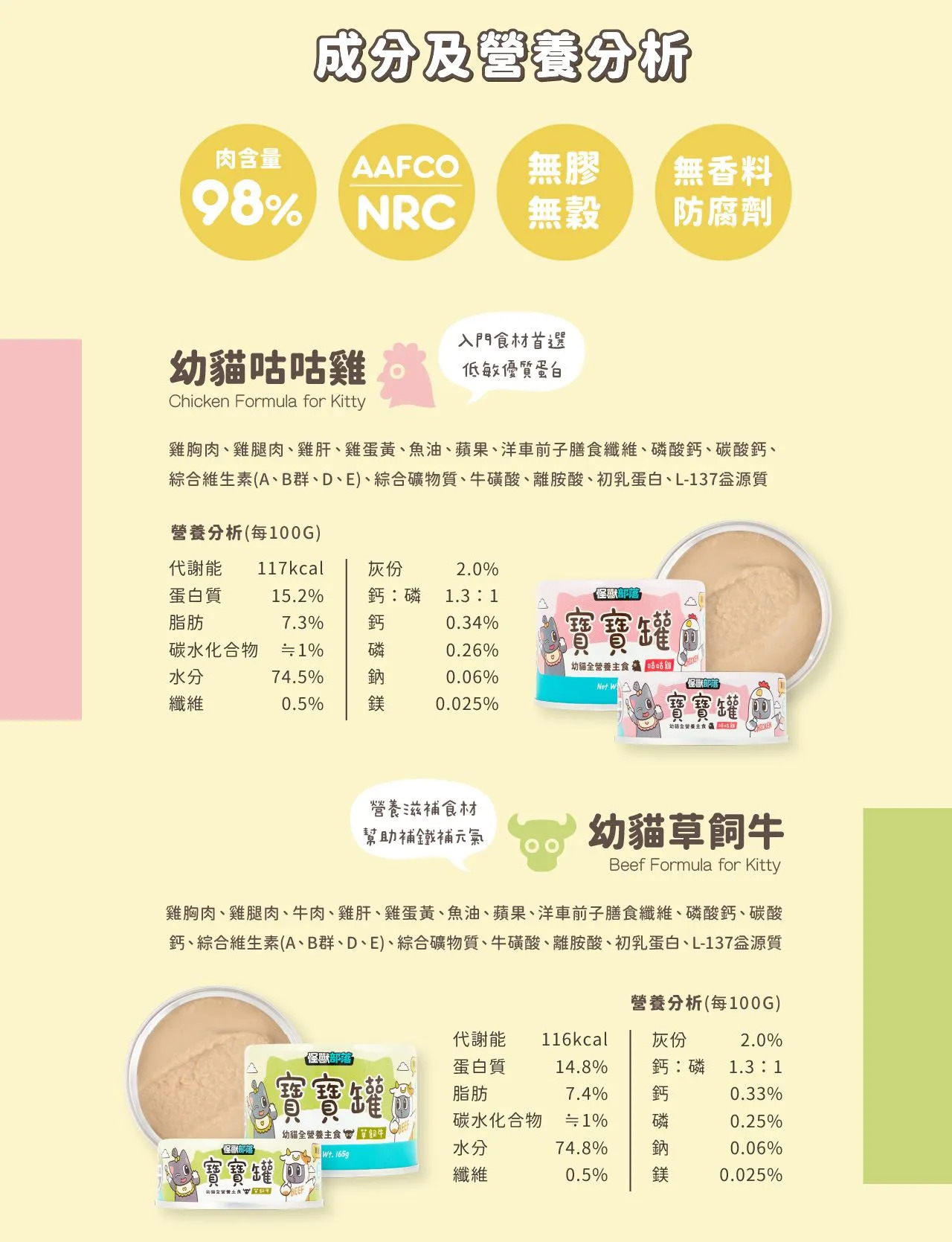 【怪獸部落】怪獸部落寶寶無膠主食罐 82G /165G幼貓 幼母貓 孕貓 幼貓罐頭 慕斯 母貓罐頭 寶寶罐