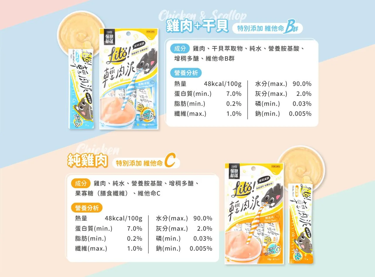 • 雞肉+干貝 (維他命B群添加)