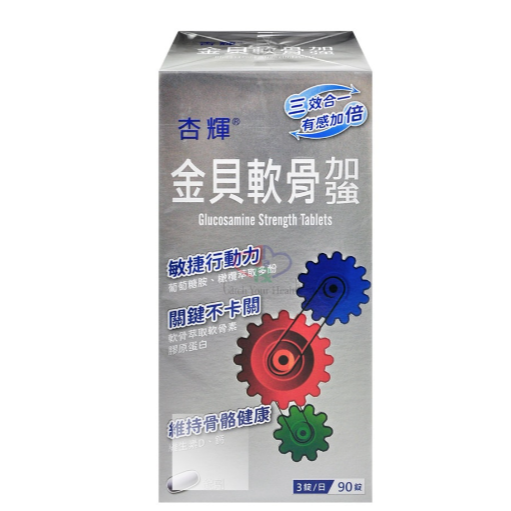 中文品名:杏輝金貝軟骨加強錠 內容物名稱:葡萄糖胺鹽酸鹽、磷酸氫鈣、膠原蛋白……詳見外包裝標示 淨重、容量或數量:90錠/盒 食品添加物名稱:詳見外包裝標示 製造廠商或國內負責廠商名稱:杏輝藥品工業股份有限公司 製造廠商或國內負責廠商電話:0800-015-151 製造廠商或國內負責廠商地址:台灣宜蘭縣冬山鄉中山村中山路84號 原產地(國):台灣 保存期限:詳見外包裝標示 製造/有效期限:詳見外包裝標示 營養成分標示:詳見外包裝標示 含基因改造食品原料:詳見外包裝標示 其他經中央主管機關公告之事項:詳見外包裝標示 投保產品責任險字號:詳見外包裝標示
