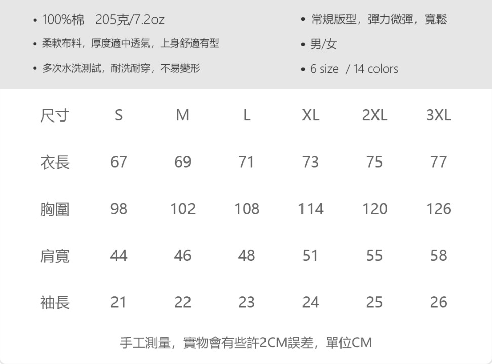 採用100%純棉,圓領T恤(非不耐洗便宜爛衣服)
