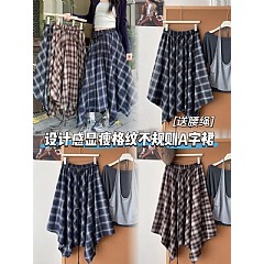 顯瘦格紋不規則A字裙