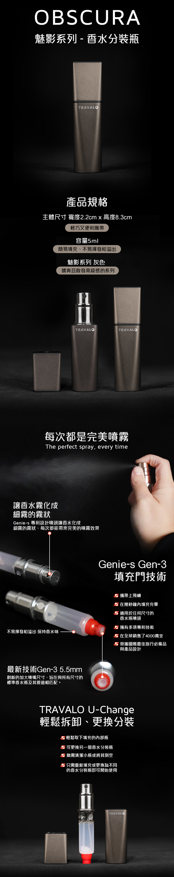 Travalo 能短時間內將香水從原裝瓶中轉移到完全密封防漏的噴霧器中