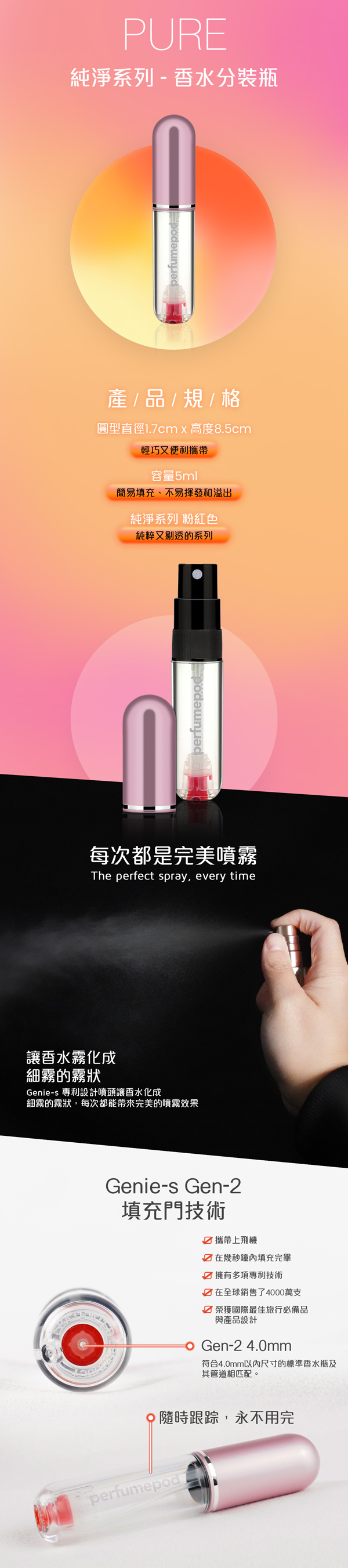 Perfume POD 能短時間內將香水從原裝瓶中轉移到完全密封防漏的噴霧器中