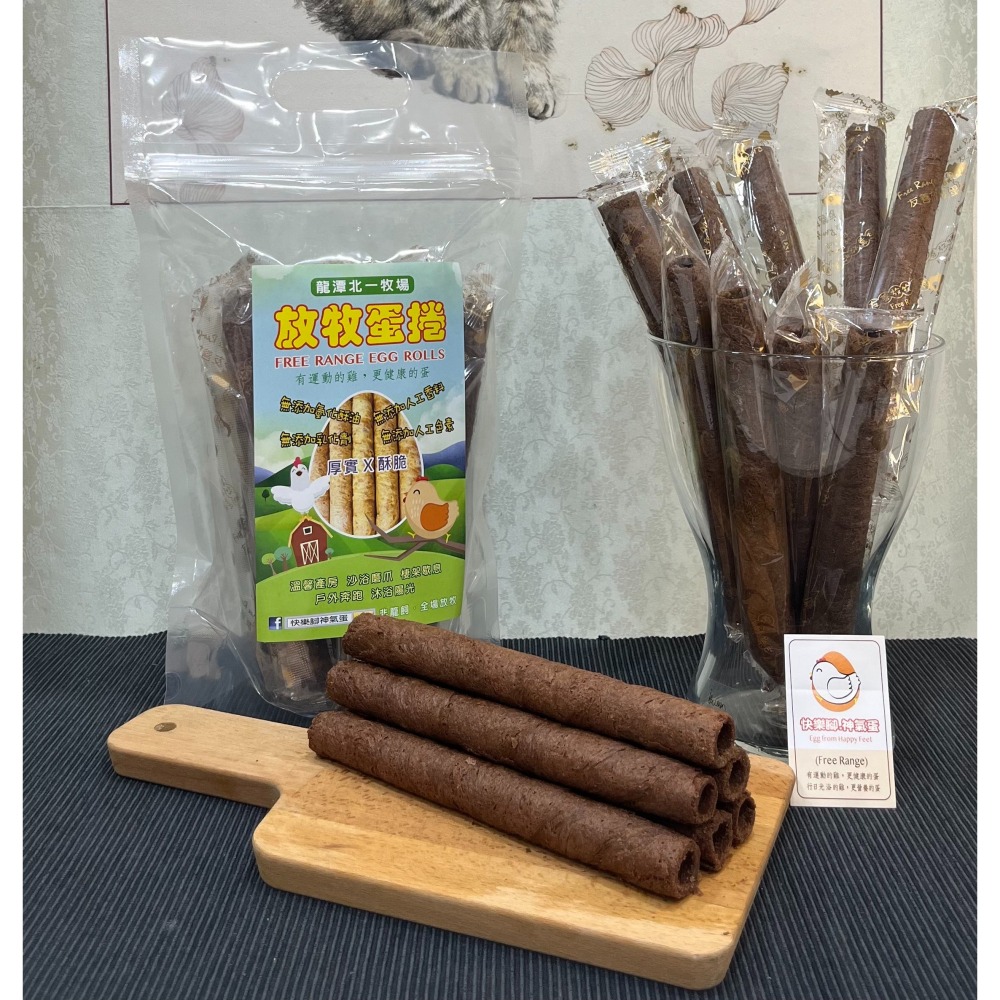 以「龍潭北一畜牧場」最優質、最新鮮的「快樂腳神氣蛋」製作出美味又安心的蛋捲